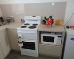 • Newly renovated kitchen with electric upright stove and modern and stylish pantry cupboard