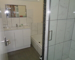 • Renovated bathroom with bath, shower and vanity