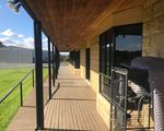 The outside entertainment area overlooks superb established gardens, plus a gazebo beside an ornamental water feature also doubling as Stock & Domestic water source; replenished via G.M.W pipeline situated at the property.
