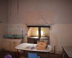 Spacious hallway and stripped out kitchen with slow combustion stove